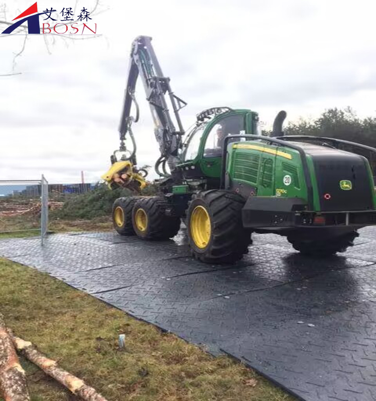 临时路面路基板铺在泥泞,沼泽,雨雪,不平坦坑洼等环境恶劣的地面上的一种垫板,能够有效的使车辆和设备顺利通过。我们公司所生产的铺路垫板采用的是复合高密度聚乙烯材质,是一种性能优越的热塑型工程塑料,它具有所有塑料的优势,和钢铁铺路垫板想比较具有具有重量轻、抗冲击、耐磨、耐腐蚀、摩擦系数小、吸能、耐老化、阻燃、抗静电等优良性能。还有一定的刚性和韧性,能够替代钢铁垫板和木质垫板。